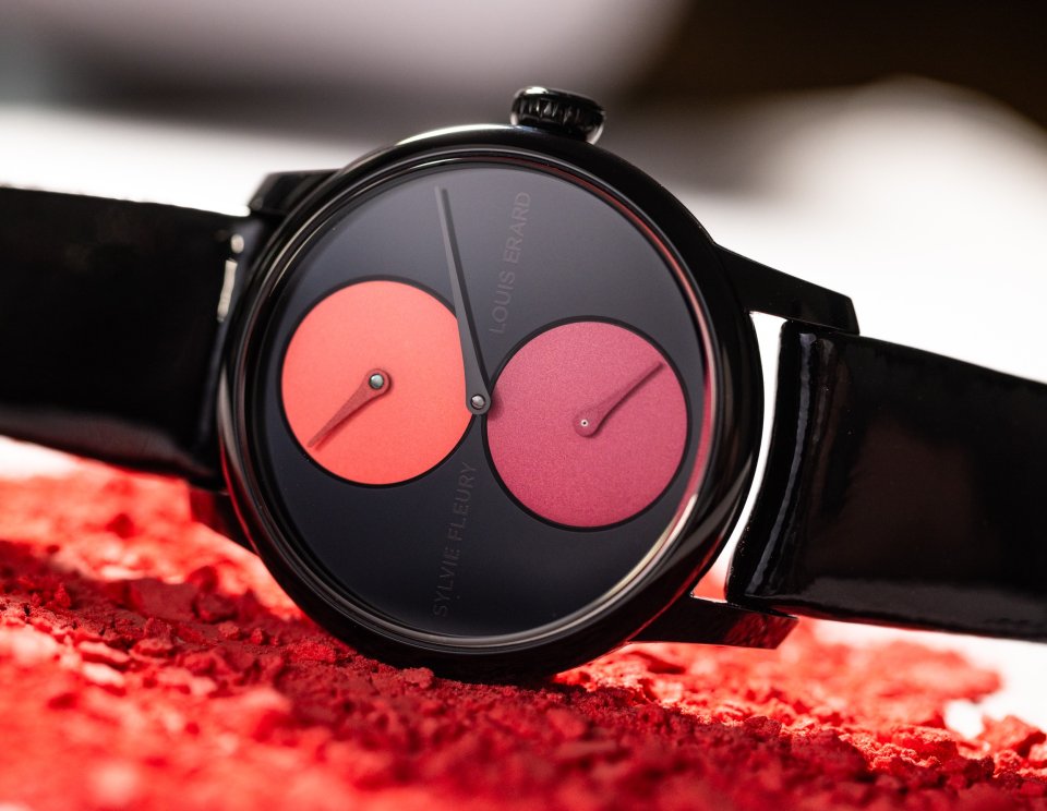 ルイ・エラールは、スイスの現代ポップアーティストのシルヴィ・フルーリーとのコラボレーションを発表致しました。メイクアップ パレットのパウダーの色調やテクスチャーを現代的なアート作品へと昇華させるシルヴィ・フルーリーとの本コラボレーションは、ジェンダーや様々な固定概念を覆す腕の上のモダンアートピースです。シルヴィのファッショナブルでアーティスティックなアプローチと、ルイ・エラールを代表するレギュレーター表示がダイアル上で見事に調和し、社会の様々な規範や概念に対して問いかけ、ジェンダーバイアスを超越した真の自由を表現しています。