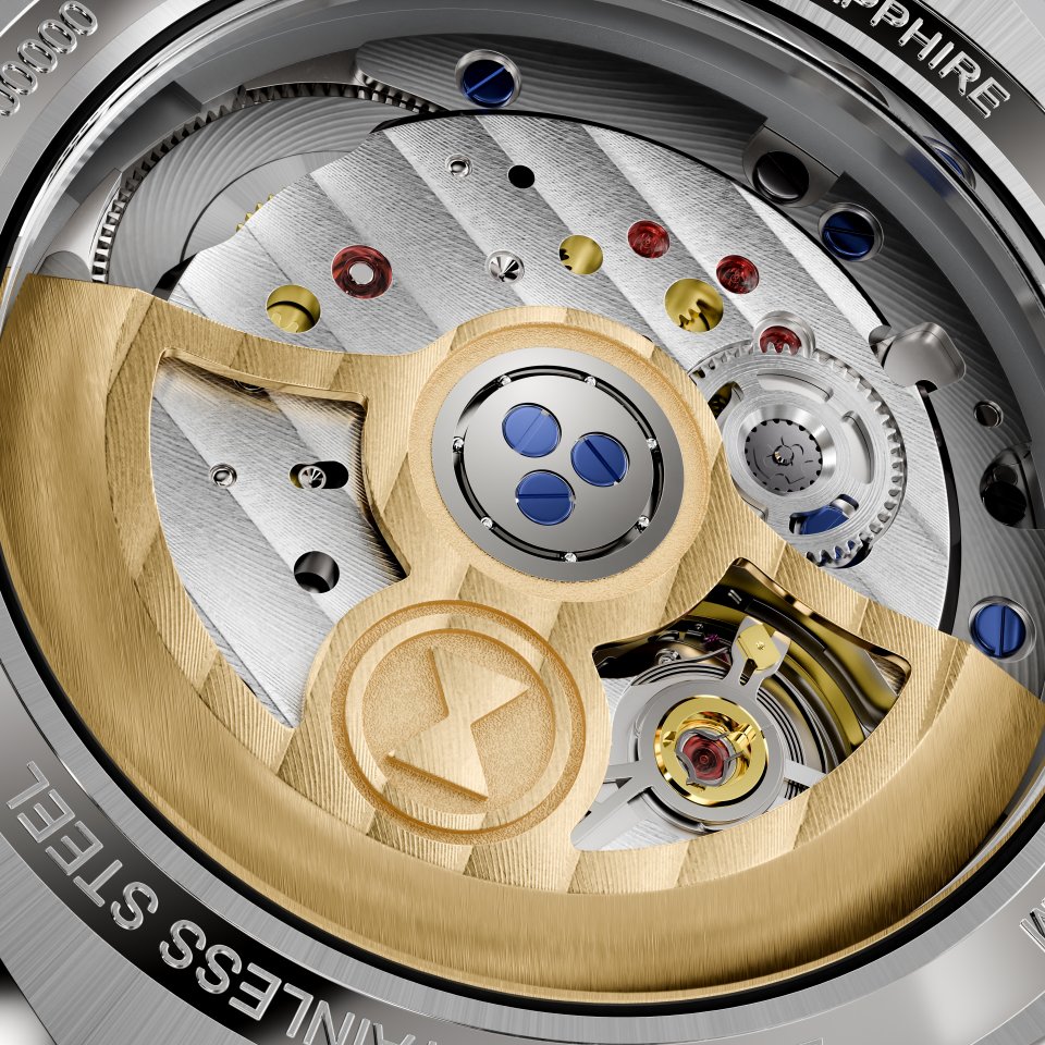 ディープブルーリバイバルは、約68時間のパワーリザーブを誇るラ・ジューペレの自動巻きムーブメントG100をベースとしたキャリバーFLD01を搭載しています。そのため、週末に時計を外しておいても、月曜日の朝には正確に動いているのを確認できます。このムーブメントは、スイスのラ・ショードフォンにある名門マニュファクチュールラ・ジューペレによって完全に設計及び製造されており、時・分表示、センターセコンド、日付表示を備えています。