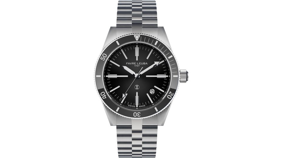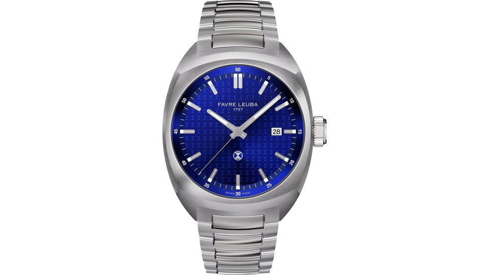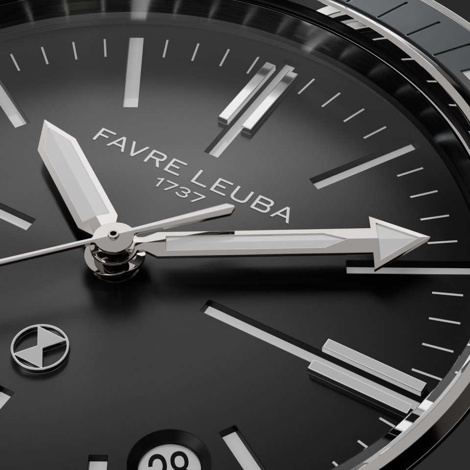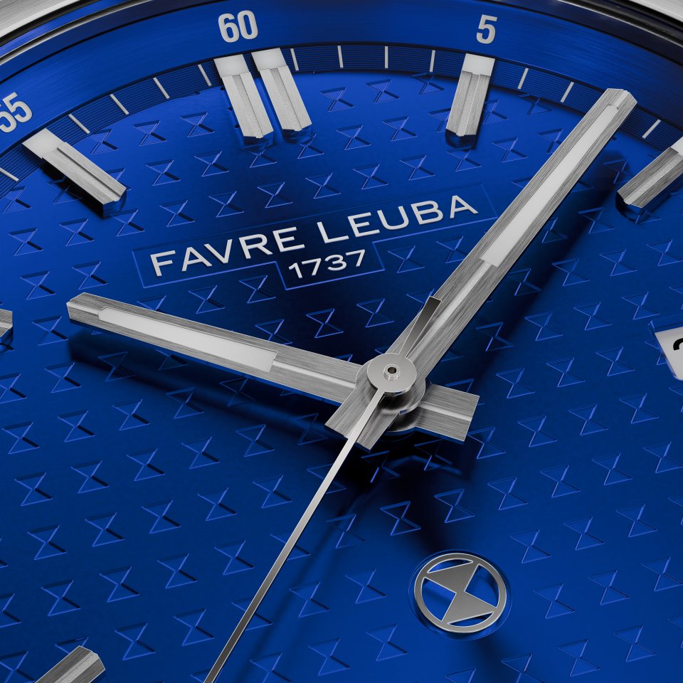 ベゼルレスの41mm、316Lステンレススティール製のケースは、上部に円形のブラッシュ仕上げ、4つのファセットにサテン・ブラッシュ仕上げが施されています。サファイア・クリスタル製のケースバックを備えたケースは、100メートル防水です。リューズには、ファーブル・ルーバの特徴である様式化された砂時計があしらわれています。H字型のリンクを備えた一体型スティール・ブレスレットは、最適な快適性を実現するフォールディング・クラスプを備え、人間工学に基づいたデザインを踏襲しています。ラバーストラップのオプションにより、スポーツシックな雰囲気を強調することができます。