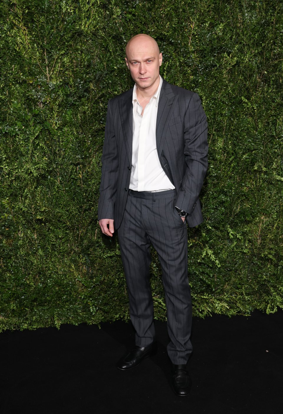 プレゼンターを務めた俳優のトム・フェルトンは、ホワイトジャケットの手元に、 パイングリーンの「デ・ヴィル プレステージ」で印象的なスタイリングを披露。
