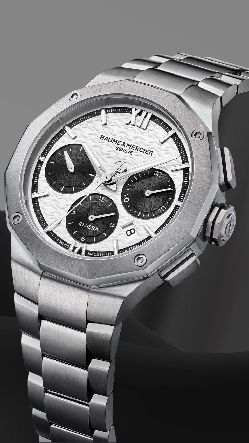 リビエラの物語は続きます。スポーツシックの先駆者、ダイナミックでスタイリッシュなこのタイムピースは皆様の人生の大切な時間を共有し、未来に向かって誠実な歩みを進めます。