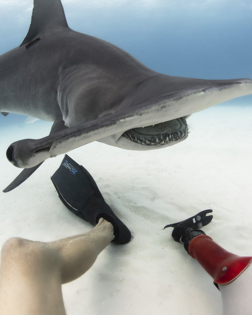 義足を装着した彼は、再び波の乗り方を習得しました。生活は決して以前と同じようにはいかなかったけれど、彼はすぐに順応し、訪れた新しいチャンスを掴みました。彼はプロのフォトグラファー兼アーティストとなり、ダイビングを学び、海洋生物学者に追随しながらサメの研究を記録する活動をしました。