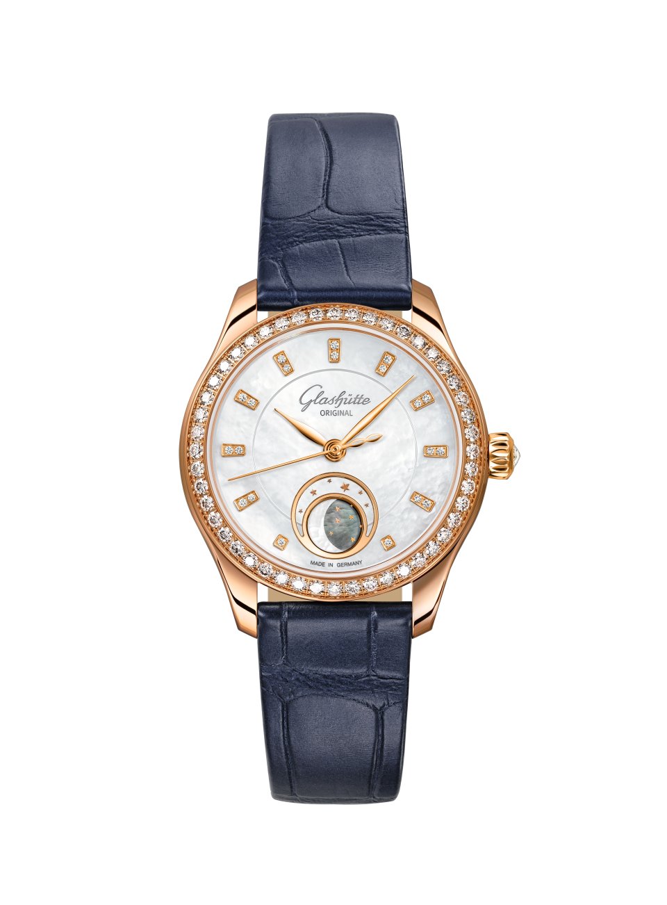 セレナーデ・ルナは、どのモデルを選んでもあらゆる装いに特別な魅力を添えます。これらの新作は、2025 年 5 月よりグラスヒュッテ・オリジナルのすべてのブティックおよび世界各国の正規販売店で販売されます。
