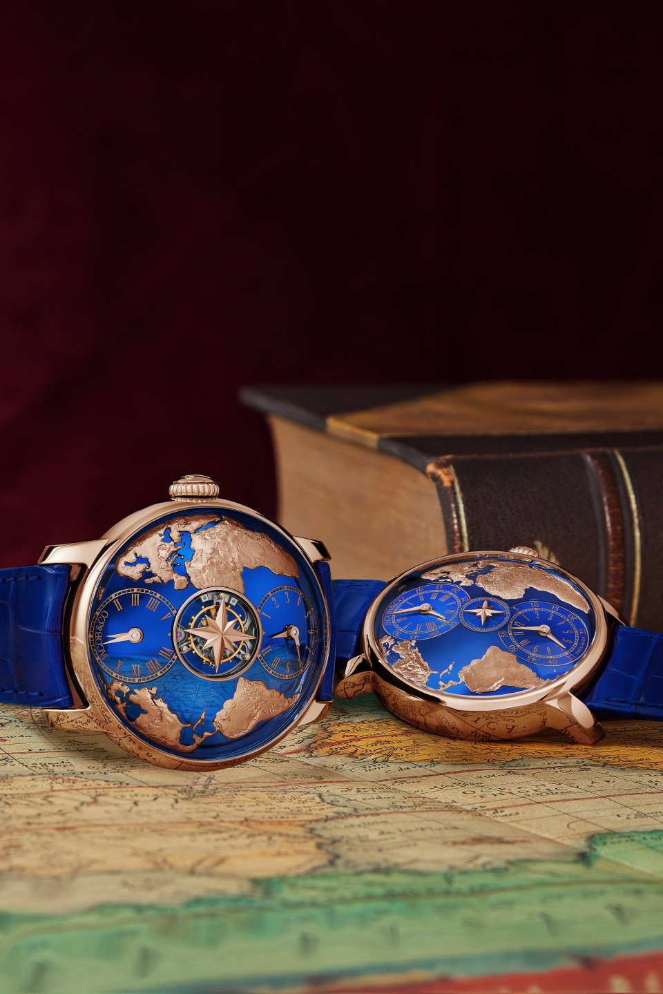 2023年に発表された「ワールド イズ ユアーズ デュアルタイムゾーン」は、ブランド創設者であるジェイコブ・アラボが時計業界へと足を踏み入れるきっかけとなった一本へのオマージュとして誕生しました。卓越した審美性と機能美を兼ね備えた本モデルは、国境を越えて高く評価され、日本国内外においても非常に高い人気を博しています。(参考:https://watch-media-online.com/news/7448/ )