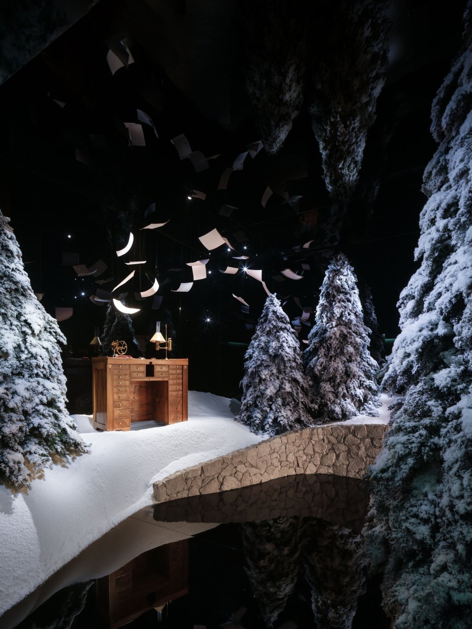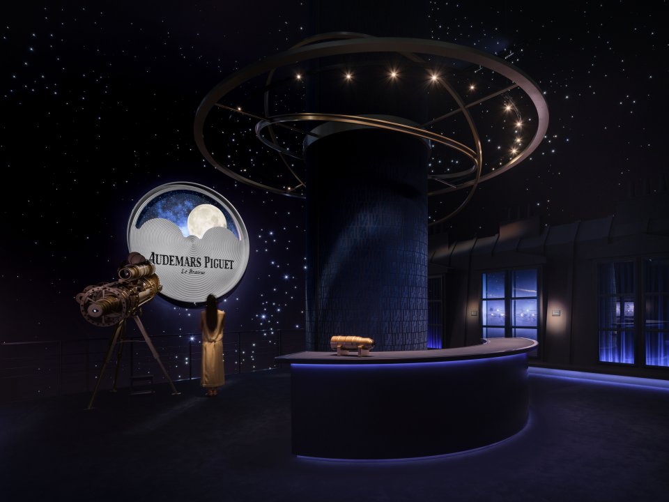 テーマ別の部屋で構成され、クロークルームの名前を捩った「Clock Room(時計の部屋)」から始まります。この部屋は時計職人の巨大な拡大鏡の下に位置しています。時間の概念について解き明かした後は雪に覆われたスイス・ジュラ山脈へと誘われ、オーデマ ピゲの物語が展開する舞台が整います。来場者が「時を巡るギャラリー」、「デザインの保管庫」、そして「天文台」と、ツアーを進める中で、ブランドの歴史の各章が、企業の創業時に遡る貴重な資料や書籍、時計などの厳選されたアーカイブ資料を基にした、没入感のあるストーリーテリングにより紹介されます。