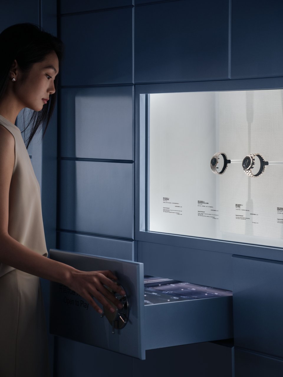 来場者は、チャイミング、カレンダー、クロノグラフの三つの主要なコンプリケーションがどのように機能するかを学び、時計製作の機械的な秘密、宇宙との深い関係について知ることができます。ブランドの歴史的アーカイブからの希少な時計の数々に加え、新作のコレクションも展示され、古き良き職人技と最先端技術が現代においてどのように結びついているかが示されています。またイノベーションラボでは、現在進行中の研究開発を通じて時計製作の未来を垣間見ることができ、新しい素材や技術の進歩を発見できる機会をご提供します。