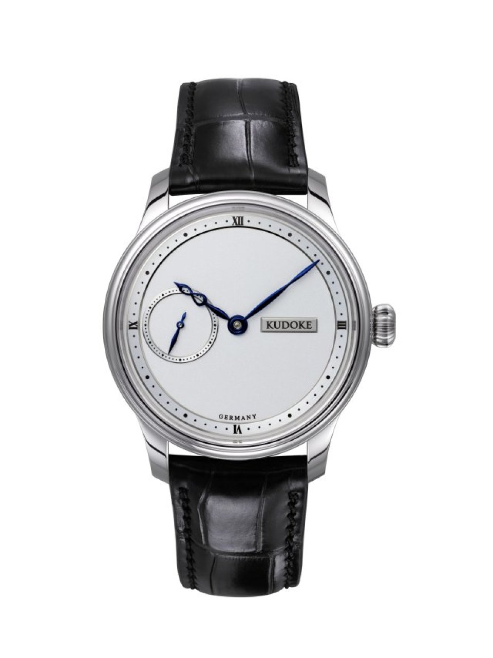 クドケはドイツの独立時計師ステファン・クドケ氏が2007年に立ち上げたブランド。こちらのクドケ1は自社製ムーブメントを搭載した初のモデルで、インフィニティーハンドと名付けられた∞を模った青焼きの針が特徴的。ケースバックからはアンティークの懐中時計から着想を得た、美しい彫金が施されたムーブメントを楽しんでいただけます。分業であることが多い彫金と時計の組み立て、そのどちらも行えるクドケ氏らしい作品です。