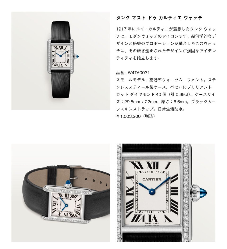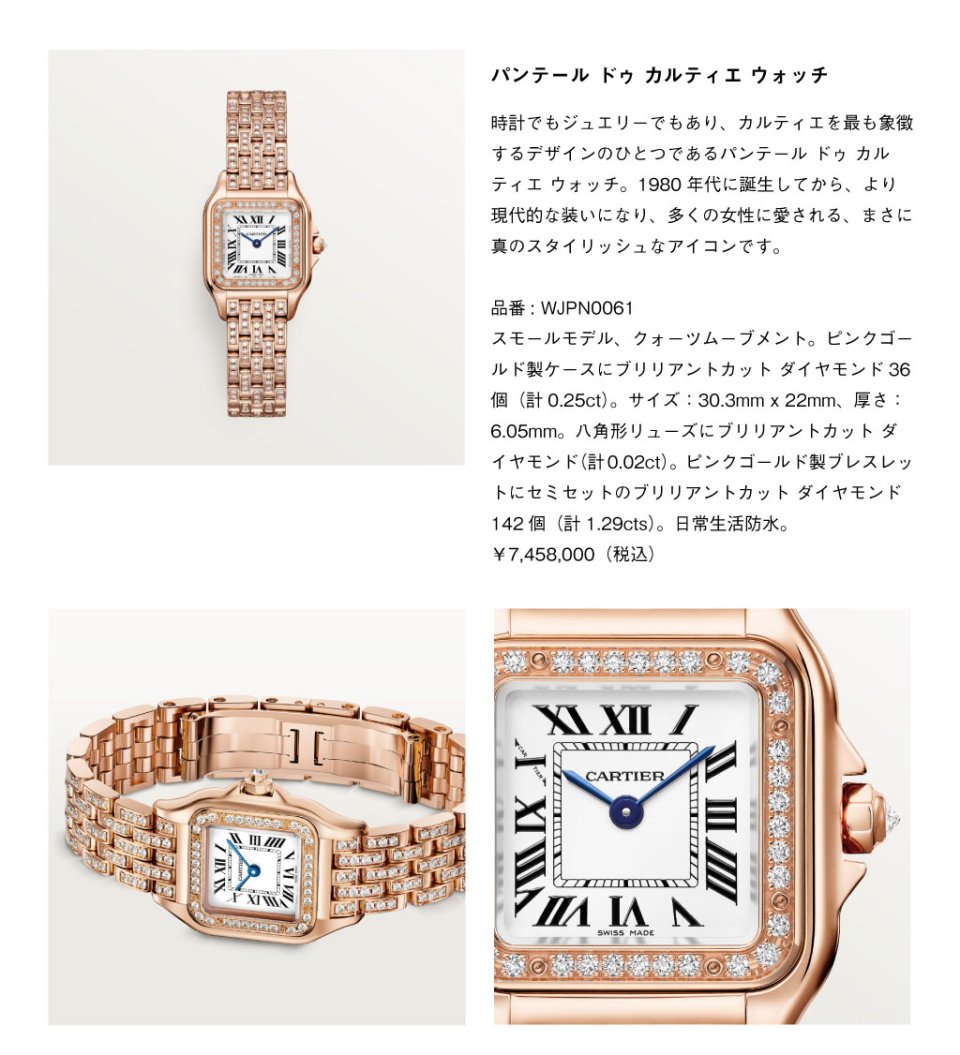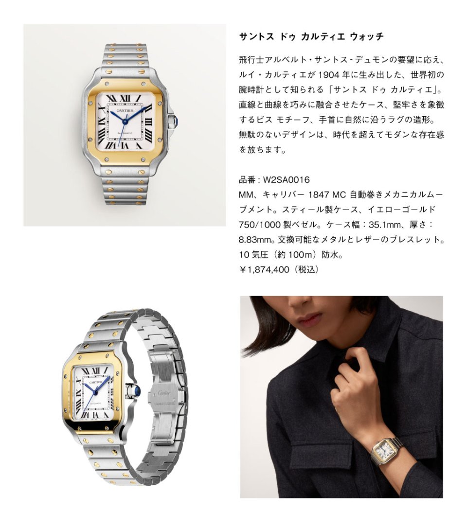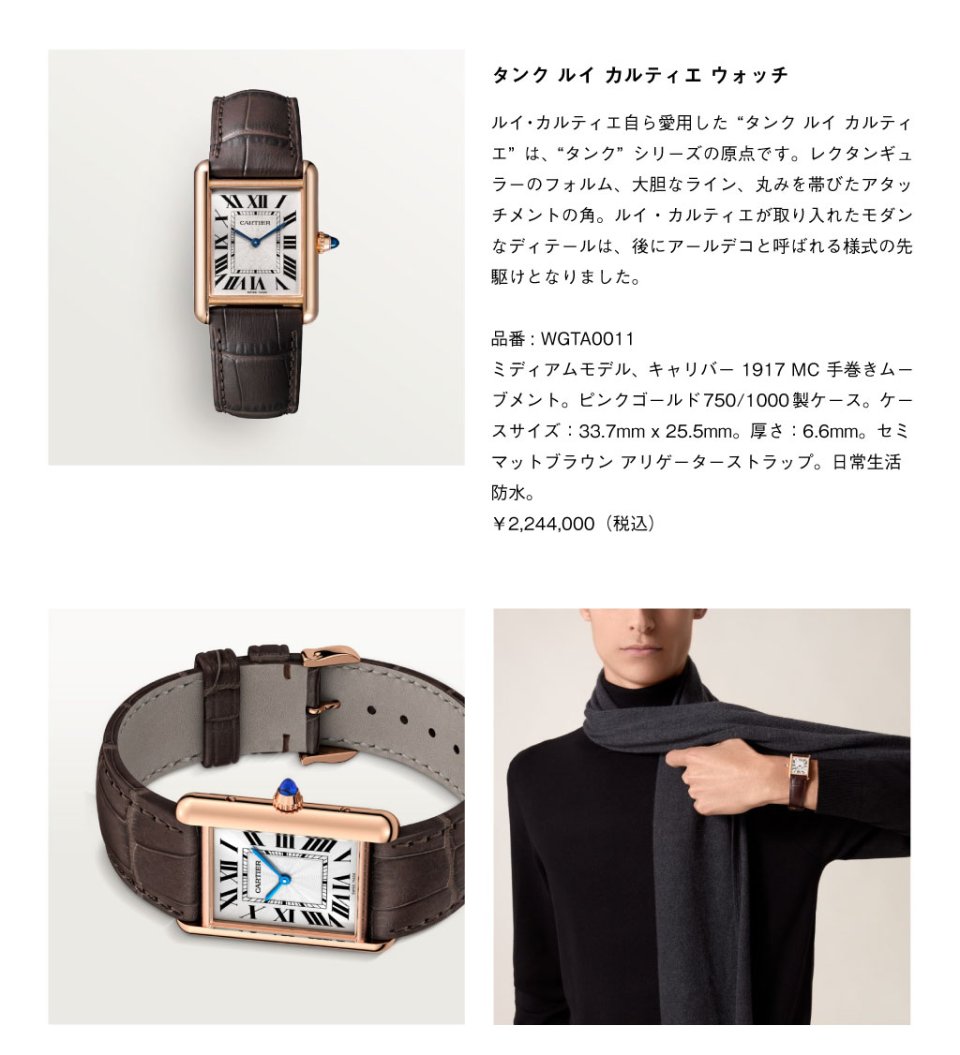 華やかさをまとうジュエリーウォッチ「パンテール ドゥ カルティエ」、際立つデザインをもつ伝説のタイムピース「タンク ルイ カルティエ」、さらなる高みを目指す男性に捧げられた「サントス ドゥ カルティエ」など、世代を超えて愛されるカルティエのウォッチメイキング。