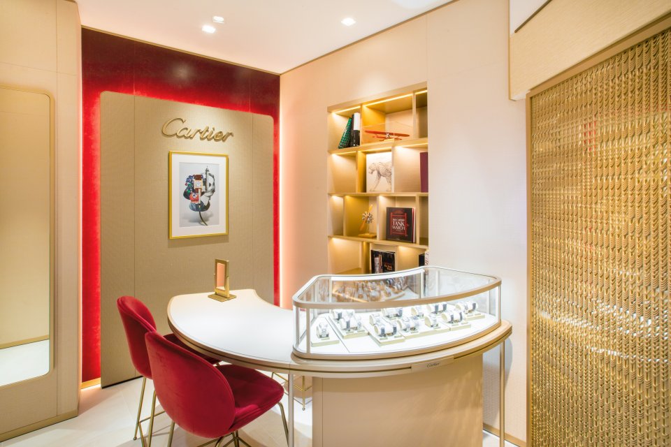 ホリデームードたっぷりの店内には、世代を超えて愛されるカルティエ ウォッチの数々