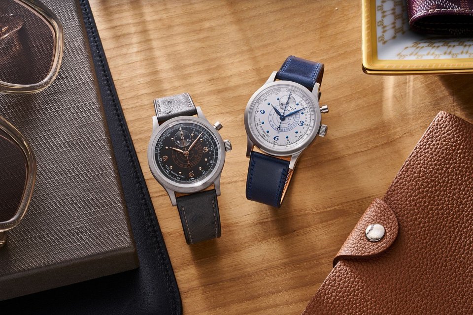かつての「アノニマス(無名)」なヴィンテージ・クロノグラフを彷彿とさせるよう、ブランドロゴはあえて控えめに配されています。また、アンティークファンには馴染みの深いブレゲ数字を採用しながら、ケースには通常とは異なるフラットベゼルとドーム型風防を組み合わせ、クラシックな佇まいを完成させています。