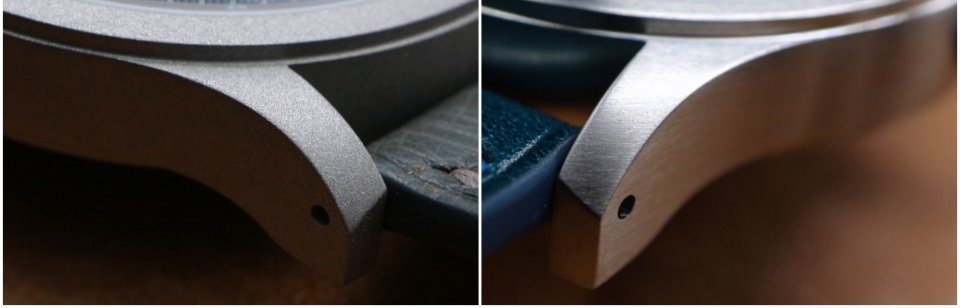 そしてダイヤルデザインは、質感の異なる2つのモデルが用意されています。『ヴィンテージでありながら新しい』という基本理念に基づき、1つは、ブラスト仕上げのスティールケースにグレーのダイヤルとローズゴールドのアクセントを組み合わせたもの。これはニッケルメッキのケースやギルトダイヤルのような雰囲気を醸し出しています。もう1つは、ダイヤルの質感をより際立たせる、クラシックなシルバーとブルーの組み合わせです。