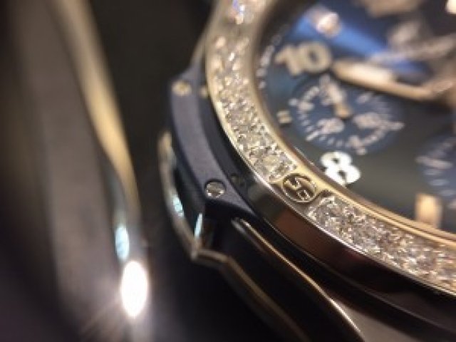 今までのウブロに多かった2重ダイヤモンドでは無く、 1重で粒の大きいダイヤモンド36個がベゼルを取り囲んでおり
