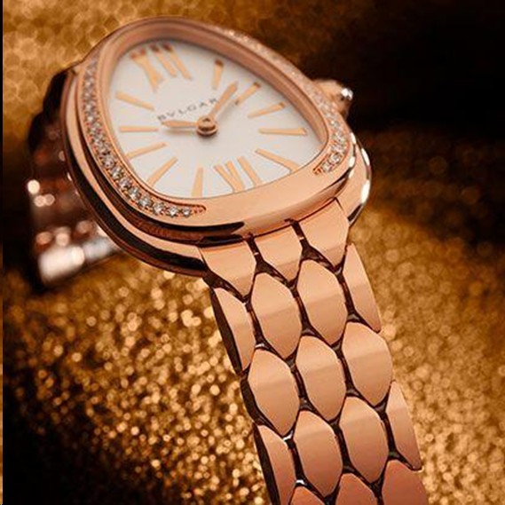 ブルガリはジュエラーとして卓越したデザインセンスで知られています。新しい『セルペンティ セドゥットーリ』コレクションはこの特質を究極に表現しています。ドロップ型のケースとヘキサゴナルパターンのブレスレットリンクは完璧に一体化し、ボーン トゥ ビー ゴールドのアイコンの永遠の再生を祝した新しい解釈を強調します。「セドゥットーリ」は文字通り手首を流れ、パワーとセンシュアリティの強いオーラを放ちます。