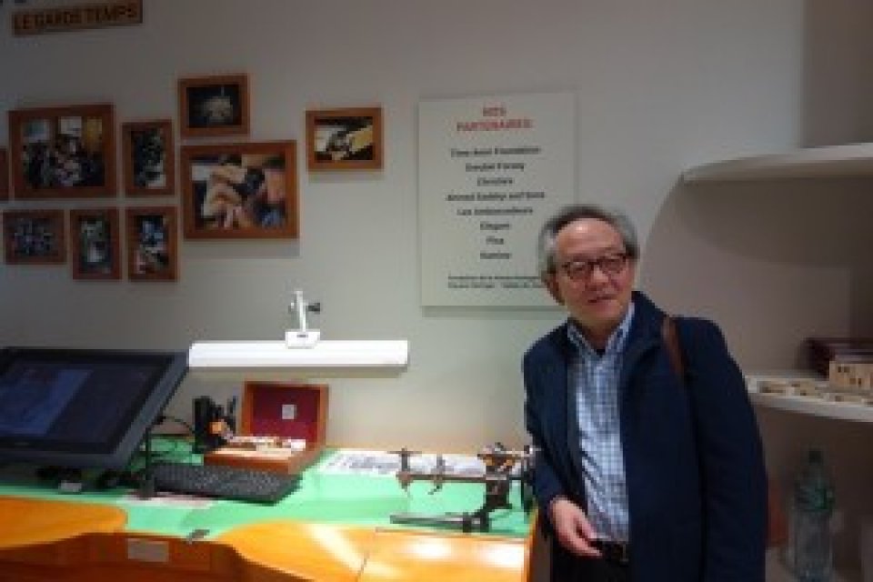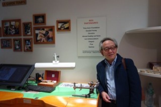 そこには フィリップ・デュフォーさんや、グルーベル・フォルセイ一行、そして作業を担当しているミッシェル・ブーランジェさんもいて、(日中は、制作の実演をしています)世界中の時計関係者たちが集まって歓談している様子です。
