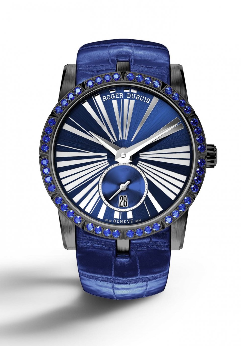 エクスカリバー36オートマティック噴火口から炸裂するブルーの溶岩。エクスカリバーエッセンシャル36オートマティックは、美しいブラックDLCチタンケースに48個のブルーサファイヤをセットしたベゼルを組み合わせています。